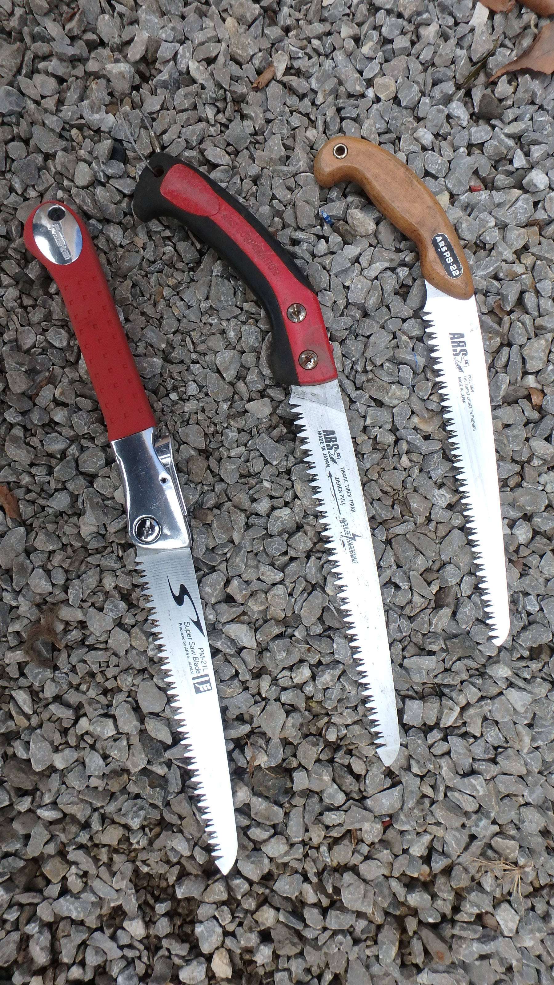 左は折り込み型、中はキャンパワープロ、右はピストル型ノコ。