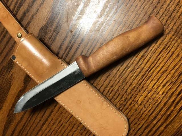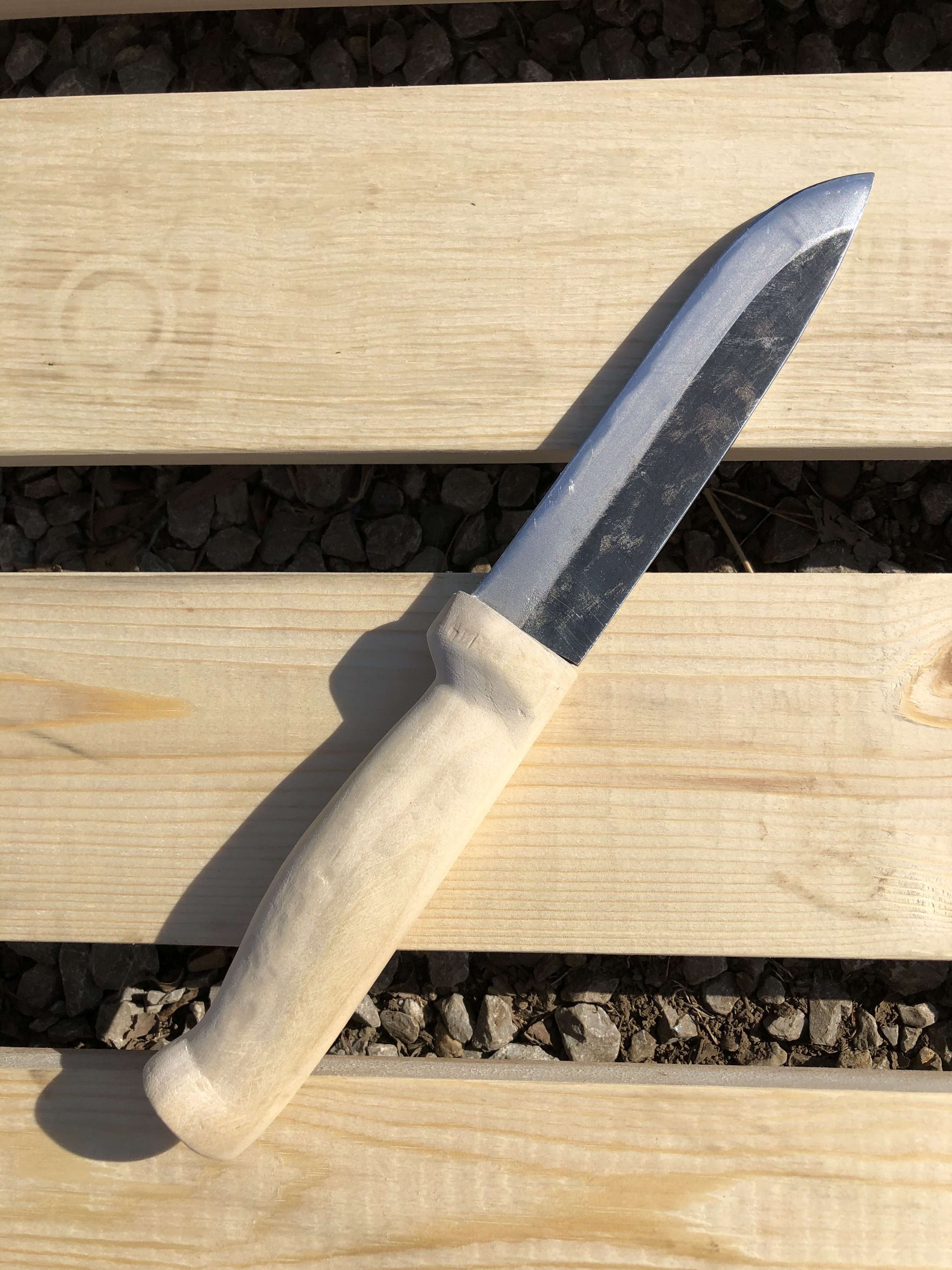 前回紹介したこの和ナイフ「マキリ」のハンドルを着色しました。